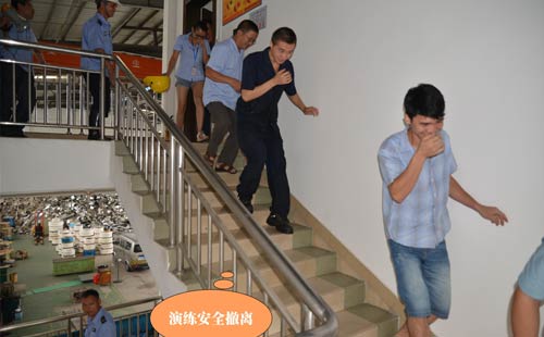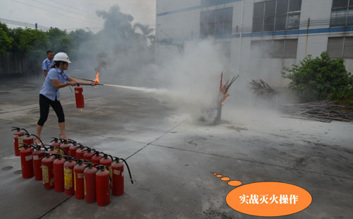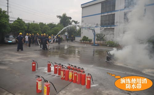 第二個環(huán)節(jié):演練緊急疏散,模擬情景是辦公樓內(nèi)響起了火災(zāi)警報,樓層內(nèi)的人員緊急疏散撤離,員工們現(xiàn)學(xué)現(xiàn)用,按萬隊長所教的做法撤離現(xiàn)場。第三個環(huán)節(jié)是演練全廠范圍內(nèi)員工接到了火災(zāi)警報后逃生、救助的情形,這也就是救援組、滅火組、醫(yī)務(wù)組、后勤組、模擬傷員等角色的演繹。第四個環(huán)節(jié)就是由萬隊長教大家如何正確使用滅火器、如何快速安裝消防水帶等一系列滅火動作,湯總特別強調(diào)了正確救火的重要性。期間,進(jìn)行了實戰(zhàn)滅火操作,不少員工親自動手體驗了用滅火器撲火的過程。